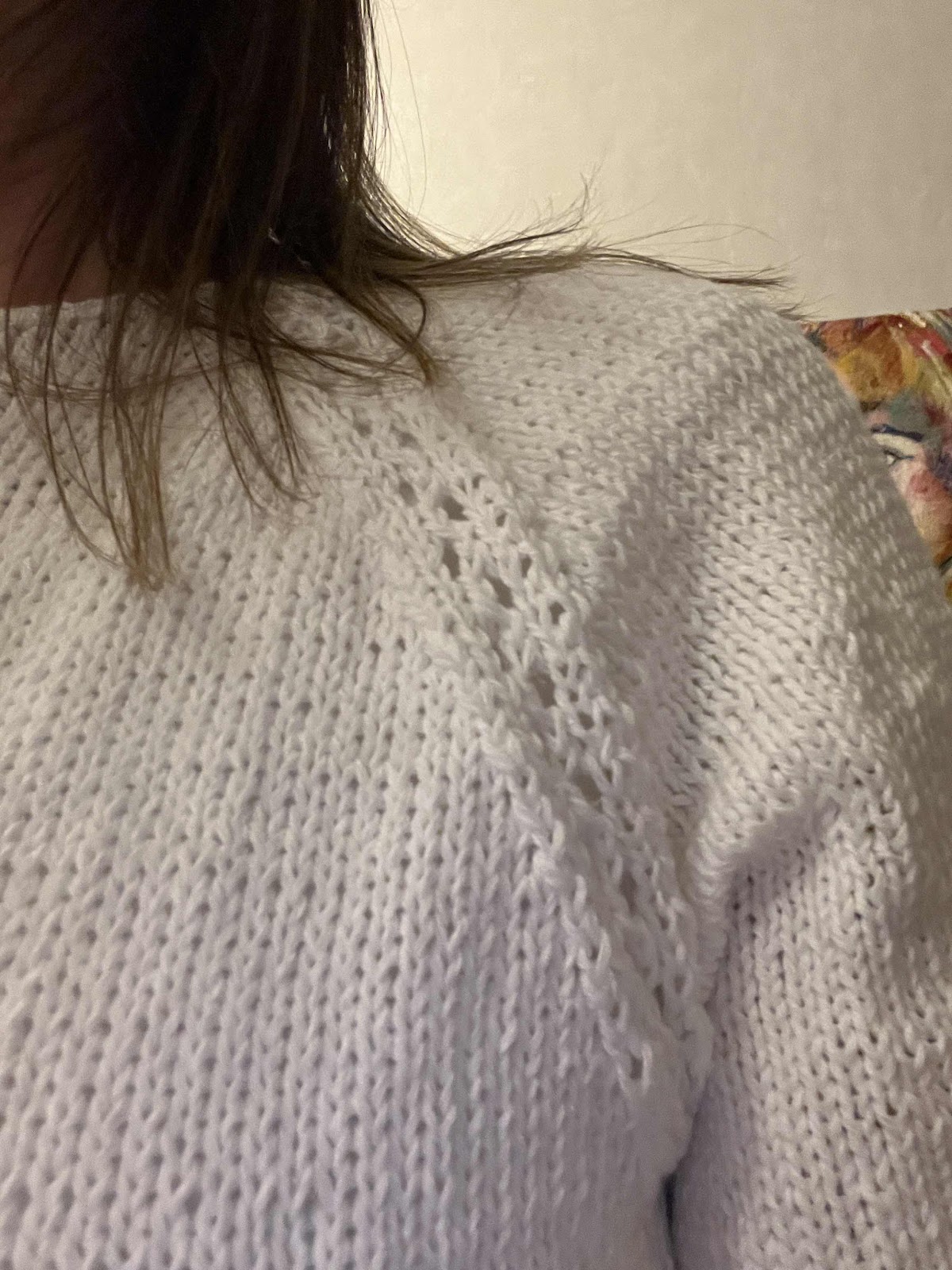 Mönster under ärmen, i sidan och i raglanen.
