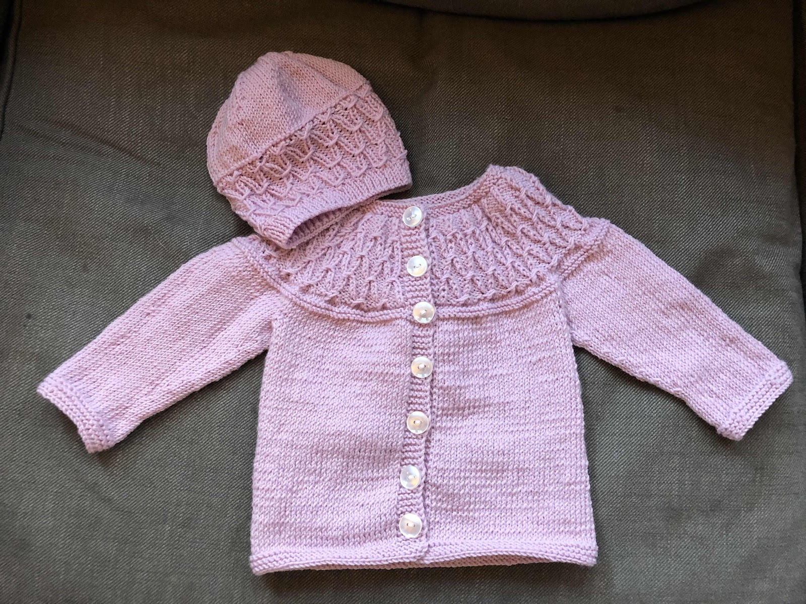 Nu har jag gjort klart koftan! Det blev en mössa också, med samma mönster. Åh, vad kul det var och vad sticksugen jag är nu! Vill göra mer! Men först har jag två virkprojekt att färdigställa!